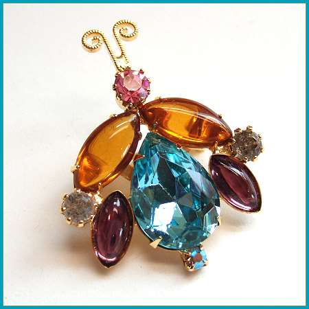 Delizza Elster Jewelry Vintage Lady Bug Pin Glass Jeweled Brooch