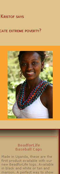 In the article Kristof discusses the work of BeadforLife.