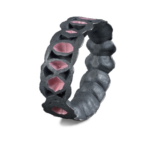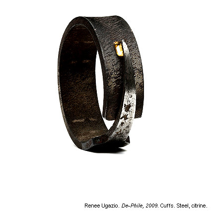 He sees his jewelry as helping the wearer make the connection between a person’s sense of self and humanity, and that person’s relationship to the work or industrial setting around her.