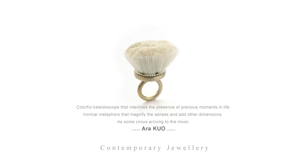 Ara Kuo is a young jewelry artist from Taiwan. She displays a very whimsical sense of design in her pieces.