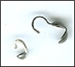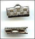 These clamps are folded metal with a loop in the center edge, come in different lengths, and have teeth. These are for ribbons or fabric. You don’t use glue, because the glue will bleed into the ribbon or fabric.