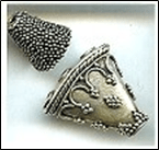 Cones come in many shapes and designs, but basically look like a megaphone. These are used to finish off the ends of jewelry, often to hide a lot of messy knots or unfinished ends inside the cone.