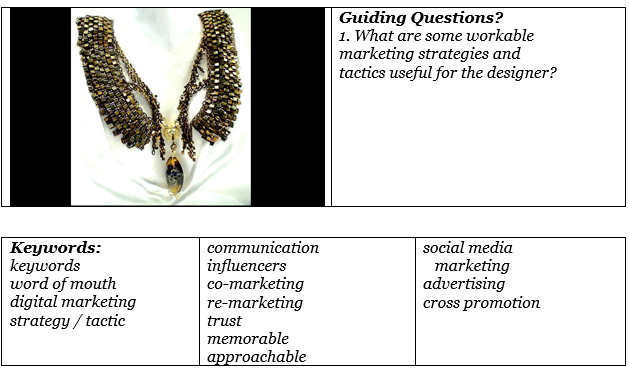 Most successful brands use very human strategies in their communication and relationship building. You need to see and understand your business in relationship terms, not transactional ones. Give you brand an aura. Inspire your customer. How will you serve them? How will you solve their problems through the jewelry you design? What do you stand for? What differentiates you from your competition? What types of products and services can your customers expect from you?