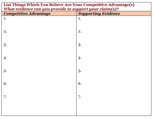 Your advantages will not be seen and understood equally by all people. And you don’t really care about all people. You care specifically about your more narrow market audience or market niche focus. What does your advantage look like to them? Why will it motivate them? What evidence are you using to know this?