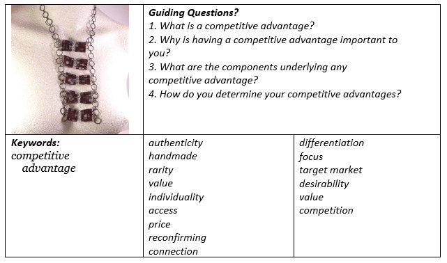 Search on Google and Etsy for jewelry makers. How do they present themselves? What qualities do they emphasize? What competitive advantages do they claim? Based on what evidence? How do they link their idea of competitive advantage to their assessments of customer needs, wants and desires?