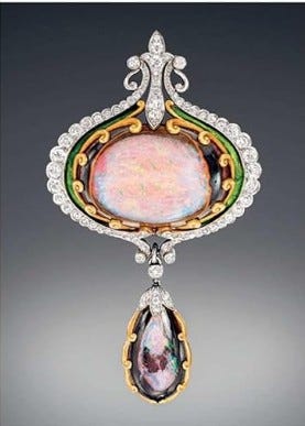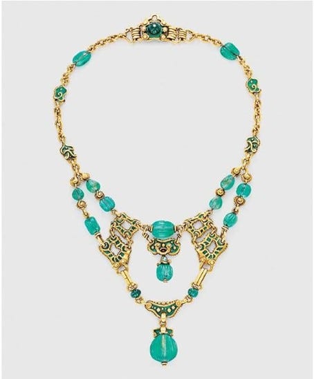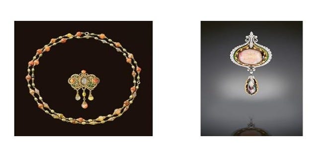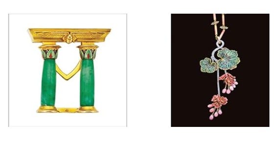 As a leader among American jewelry firms, Marcus & Co. were patronized by families such as the Rockefellers, the Wades, the Flaglers, and the Vanderbilts. Their plique-àjour designs of the early 1900s were particularly sought after; these artistic, three-dimensional enamels featuring extravagant shapes, natural motifs, and glowing colors represent the pinnacle of Marcus & Co.’s creations. Further, the family’s travels in India undeniably influenced Marcus & Co.’s designs for decades, while other styles drew on antique models that were very much in vogue, inspired by archaeological discoveries of the time. Marcus & Co. remained important participants in both the American and European jewelry scenes, through family ties as well as personal and business relationships.