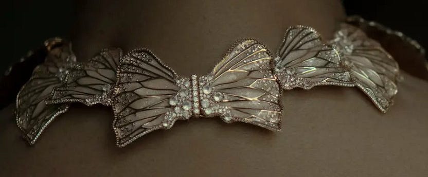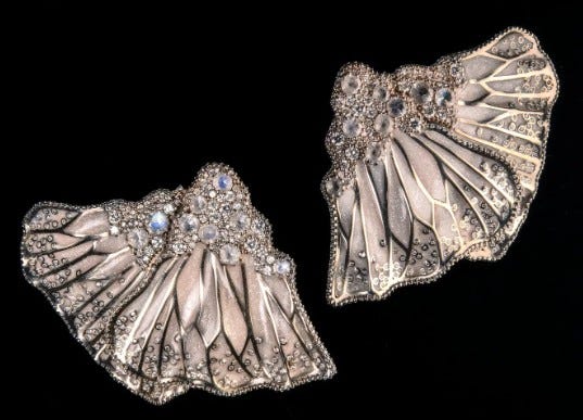 Earrings from Ms. Verstraeten’s Vienne collection. “The idea of a butterfly suggests the ephemeral,” the designer said. “But in nude shades, it becomes eternal.”Credit…Dmitry Kostyukov for The New York Times