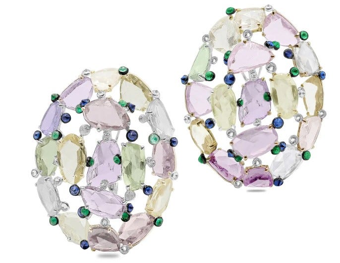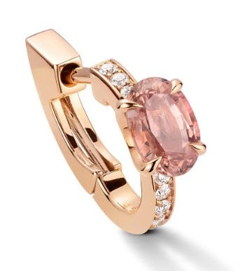 Repossi’s Chromatic Sapphires collection was designed to create the illusion of the stones floating over the skin, as in this powder blush earring.