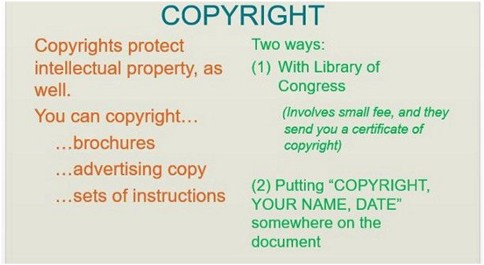 • Registering your business, trademarks, copyrights