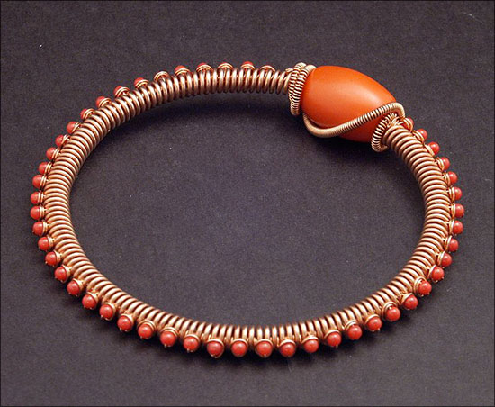 Contemporary jewelry is not associated with any particular color or pattern or texture. It is, instead, a strategy for selecting colors, patterns and textures.