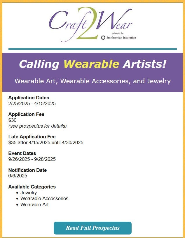 4. Smithsonian Craft2Wear Show, September 26–28, 2025, APPLY NOW