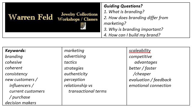 Everything you do will have the effect of either inspiring or deterring your customer. Every thought, price, design choice, marketing promotion, merchandising decision, product placement — all of these lead up to your customer recognizing (or not) you and your jewelry as a brand. Branding is the essential foundation to a successful jewelry design business.