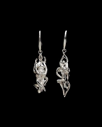 COUTURELAB:   “With these Orgy earrings she has created a range of sensual statement pieces guaranteed to be a talking point. Wear Delfina Delettrez’s Orgy Earrings for their bold statement. Each piece is carved from exquisite silver, featuring the couple in a different position. Combined with the risqué motifs, these stunning earrings create a heady mix of Kama Sutra and couture, making them extremely covetable.”